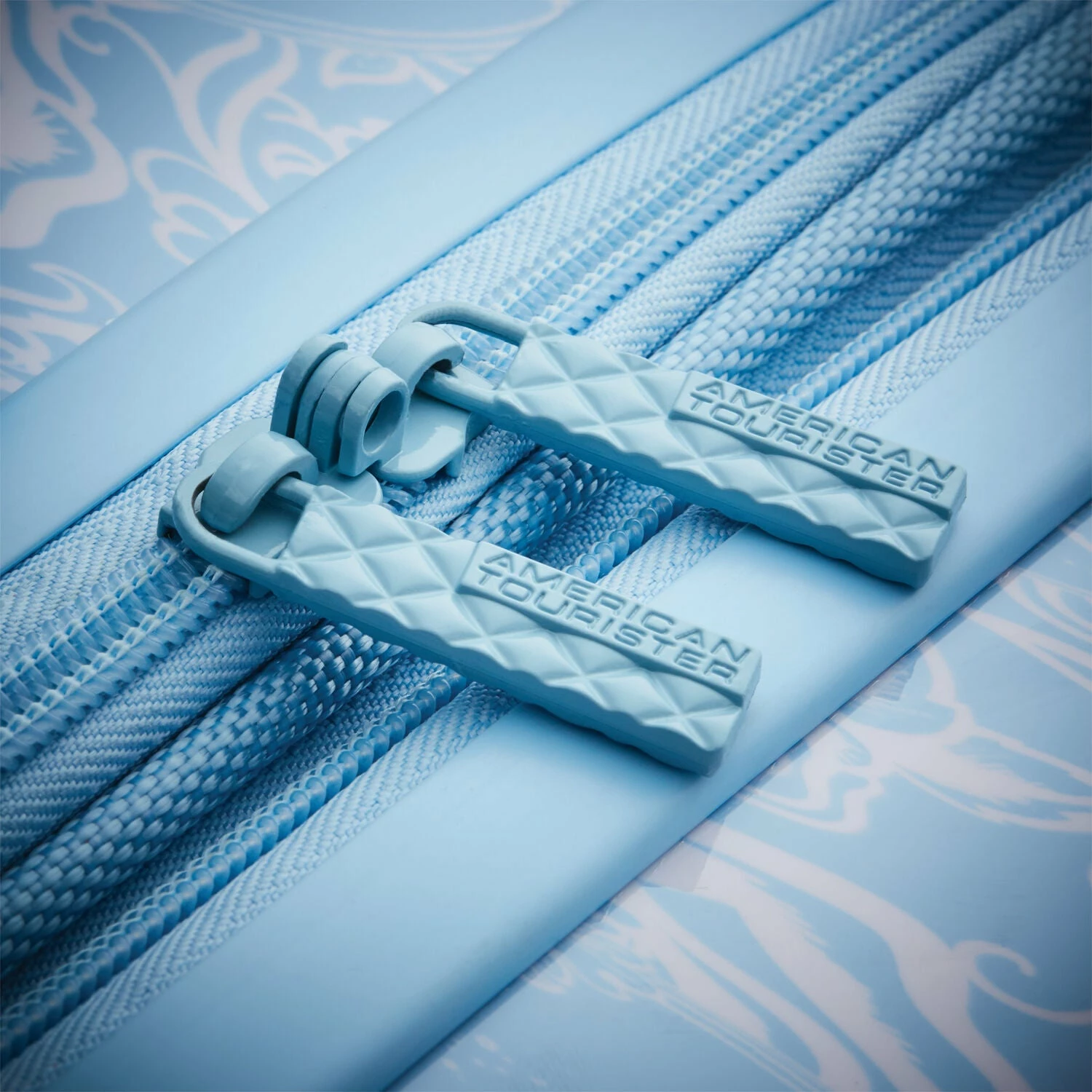- American Tourister-branded zipper pulls.