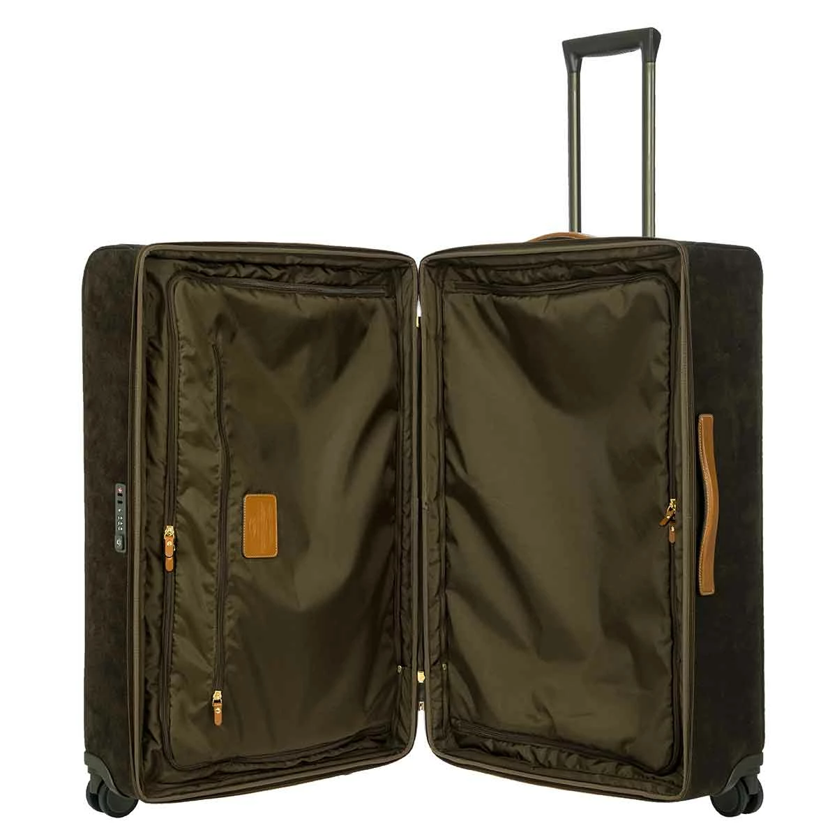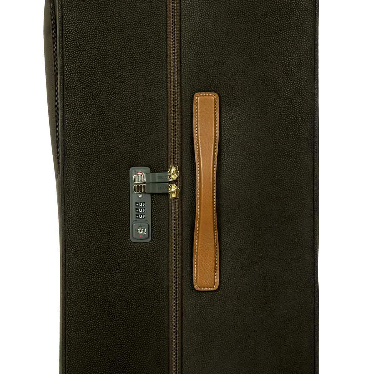 The 30 inch spinner from Bric’s LIFE collection comes with all the features needed to face every trip in perfect comfort, without ever forgetting about style. The Bric’s suede looking material (PVC) is durable, weatherproof and cleanable. The vegetable tanned Tuscan leather finishes take on an aged look over time, making this carry-on trolley unique and personal.