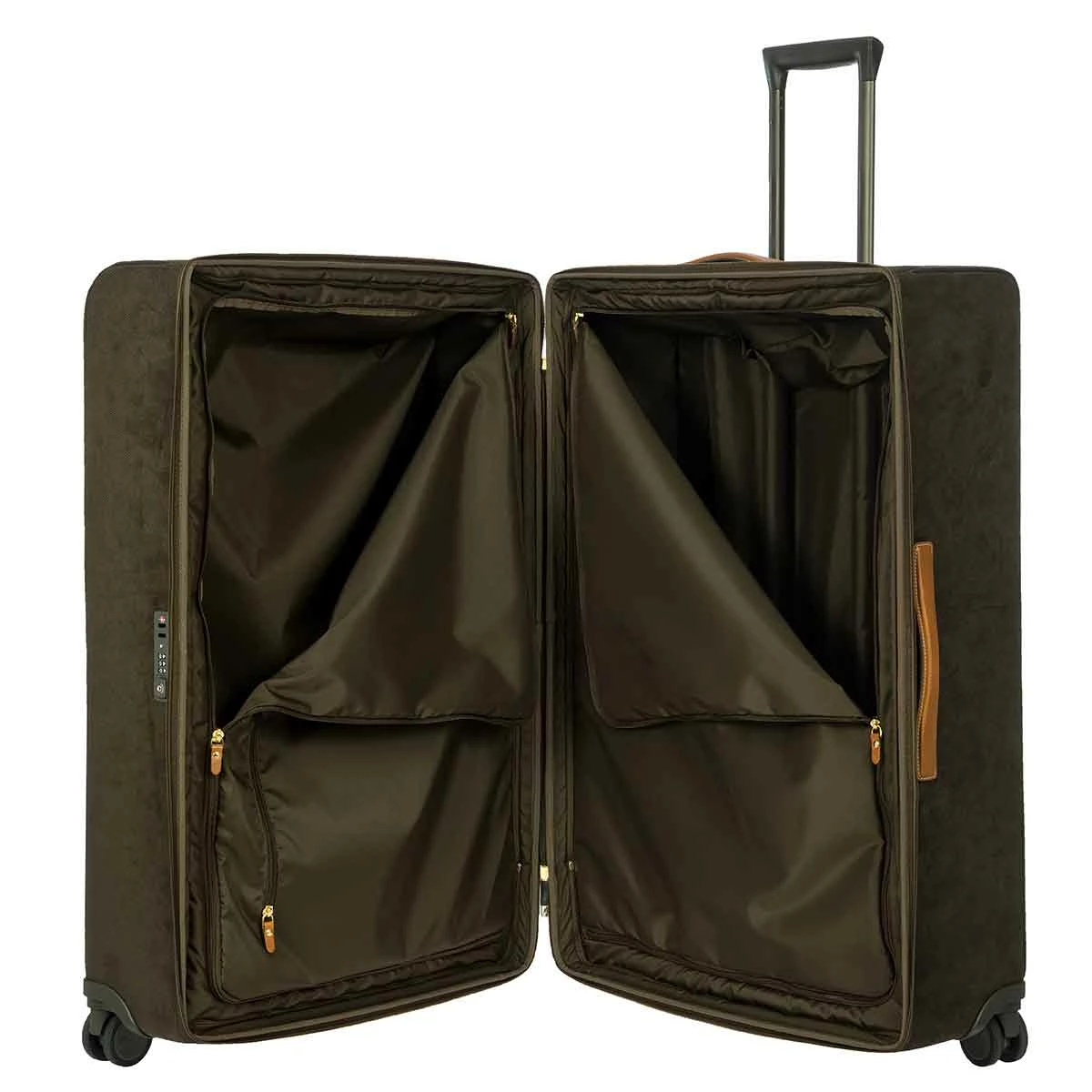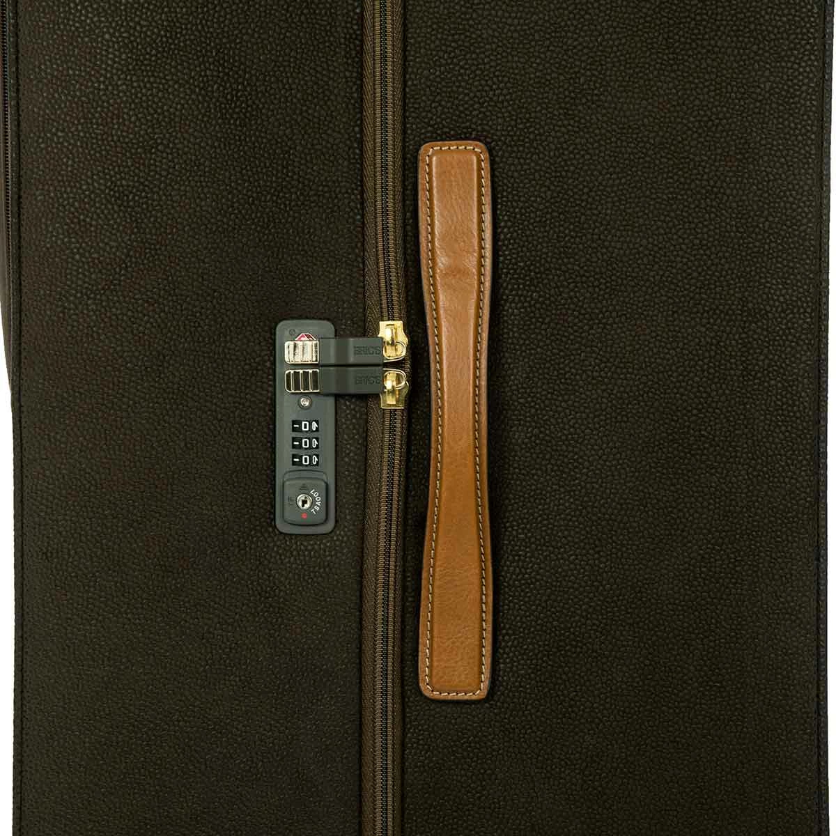 The 32 inch spinner from Bric’s LIFE collection comes with all the features needed to face every trip in perfect comfort, without ever forgetting about style. The Bric’s suede looking material (PVC) is durable, weatherproof and cleanable. The vegetable tanned Tuscan leather finishes take on an aged look over time, making this carry-on trolley unique and personal.
