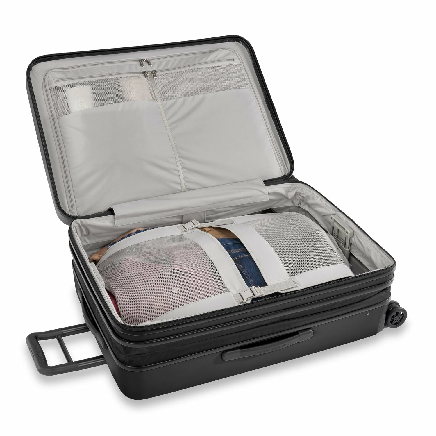 - Briggs & Riley fabric bag with drawstring included: protects suitcase when in storage