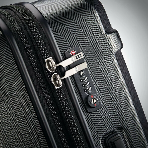 - Exterior: Durable 100% polycarbonate with metallic film and signature Hartmann print in sophisticated colors, recessed TSA lock for added security