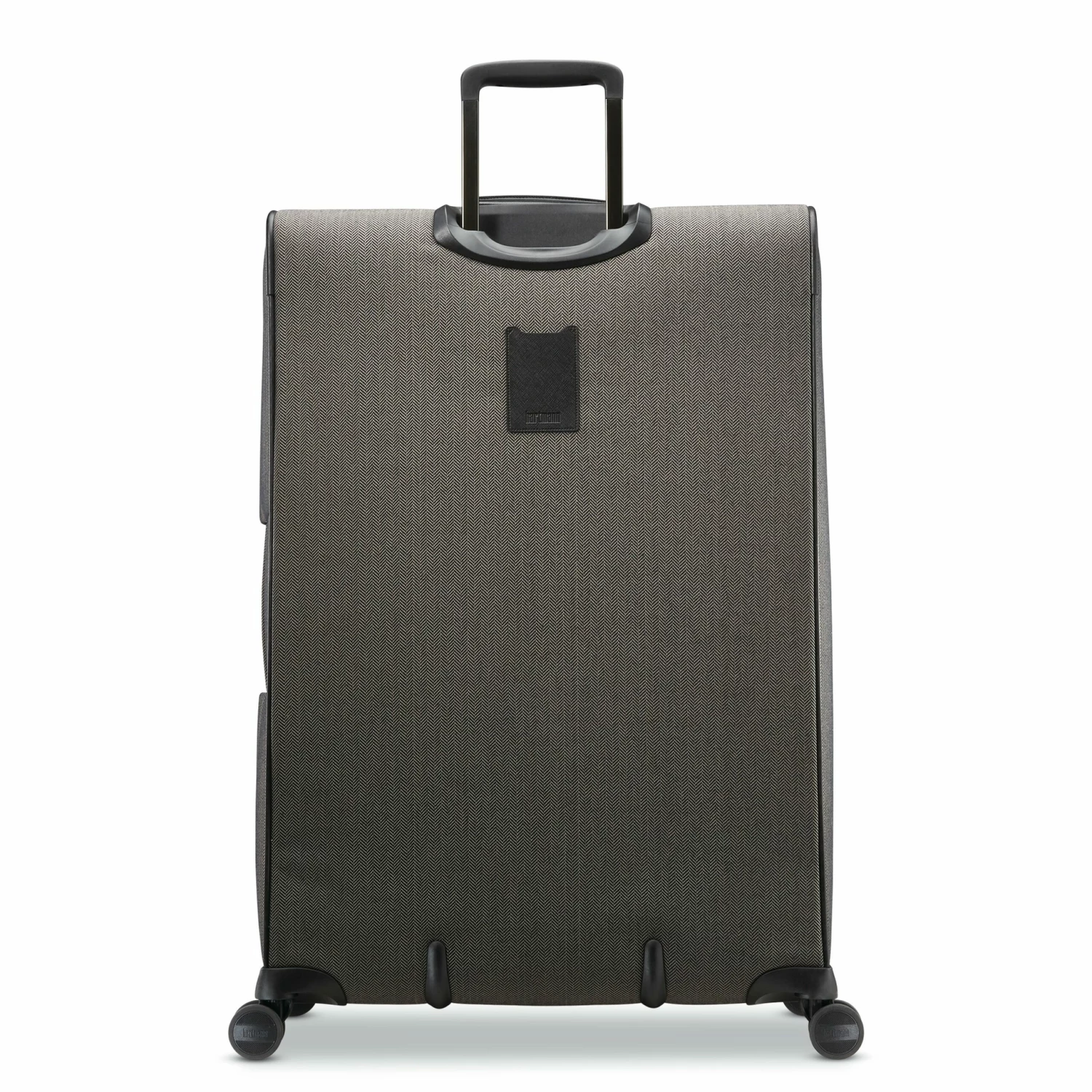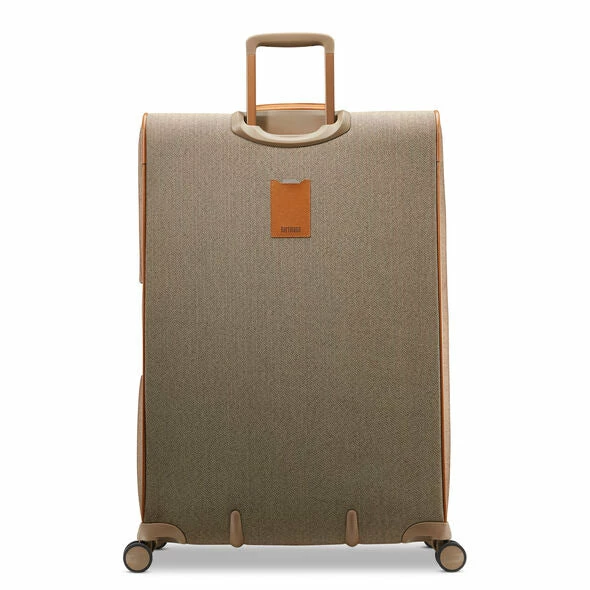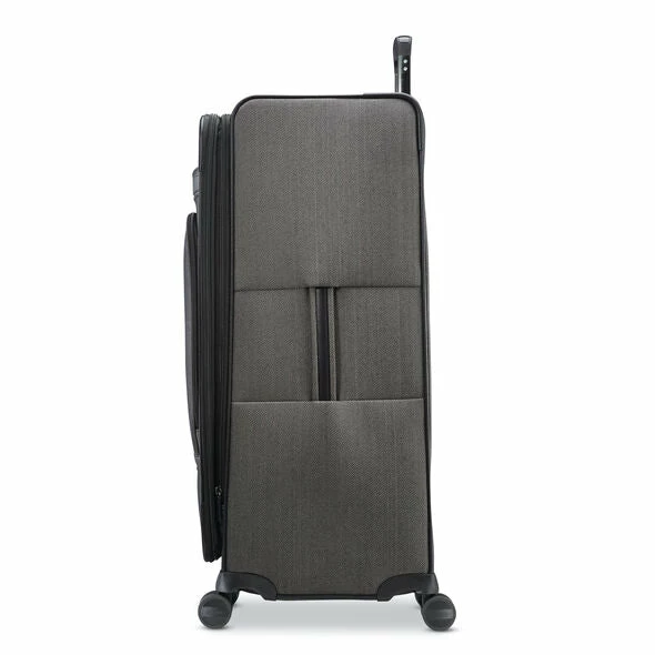 For longer itineraries, this expandable spinner fits all of your belongings in distinctive style. Hartmann signature herringbone fabric and interior Ducord™ striped accents lend a bespoke look, while a padded tri-fold suiter, cross straps, and zippered pockets ensure packing organization.