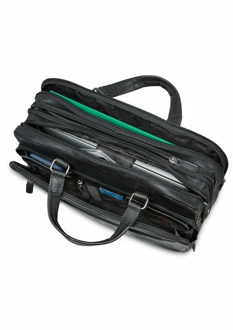 This double compartment laptop briefcase features a zippered padded compartment to keep your laptop / tablet protected. The organizer has an RFID secure pocket equipped with the latest RFID wave blocking technology to ensure your data and cards are safe. The rear features an expandable legal size file folder compartment, a zippered pocket and an attach-a-bag strap to piggy-back the briefcase on other baggage.