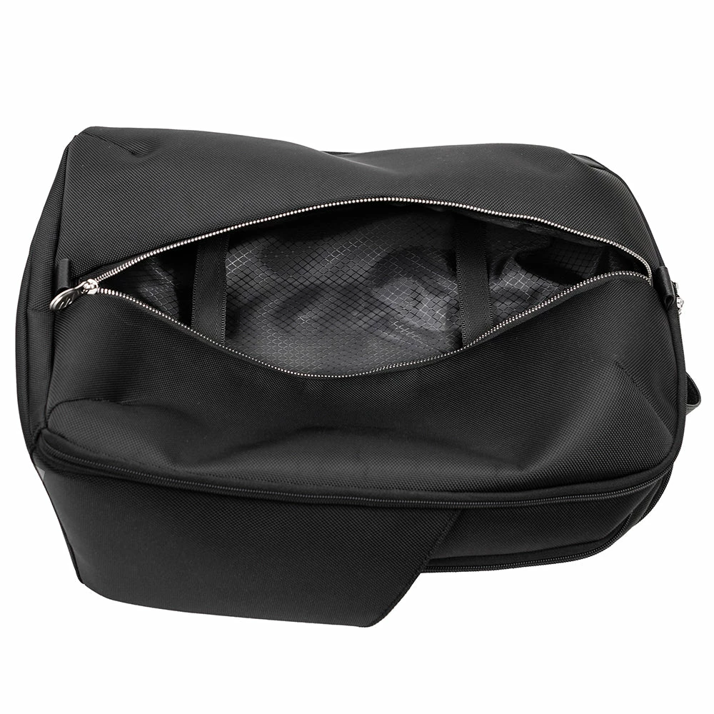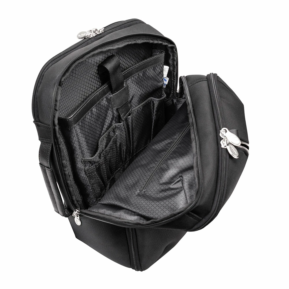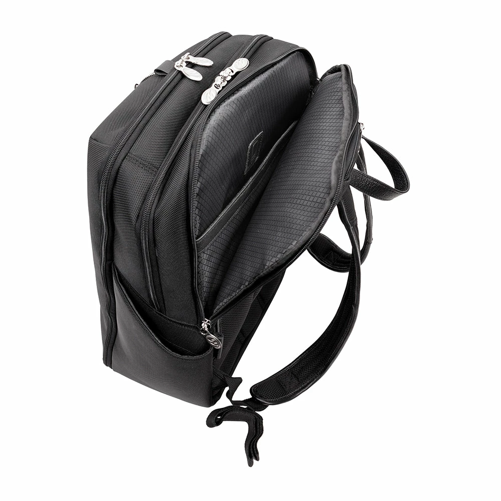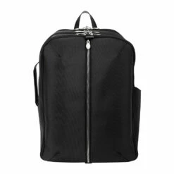 If you’re planning a business day trip this 17” nylon carry all backpack is the perfect travel companion to carry clothes and important devices you need for success. The top carry handle and pull-tab help open access to your stored items with ease. Front main vertical zipper compartment for storing clothing and travel essentials with tie down straps. The two side pockets are perfect for keeping water bottles and umbrellas easily accessible. The small top zipper pocket keeps your phone and keys secure and easy to access. The middle compartment features a 17” built-in laptop sleeve, a business accessory organizer, and an interior full-length zipper pocket. The back compartment comes complete with a secure tablet pocket and storage for files and documents. Keep your backpack comfortable with padded air mesh adjustable backpack straps with a piggyback side attachment or carry it like a briefcase with the side handle.