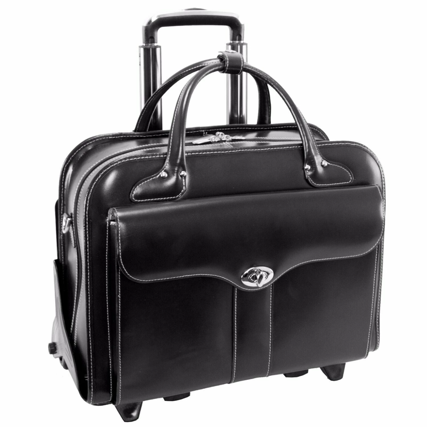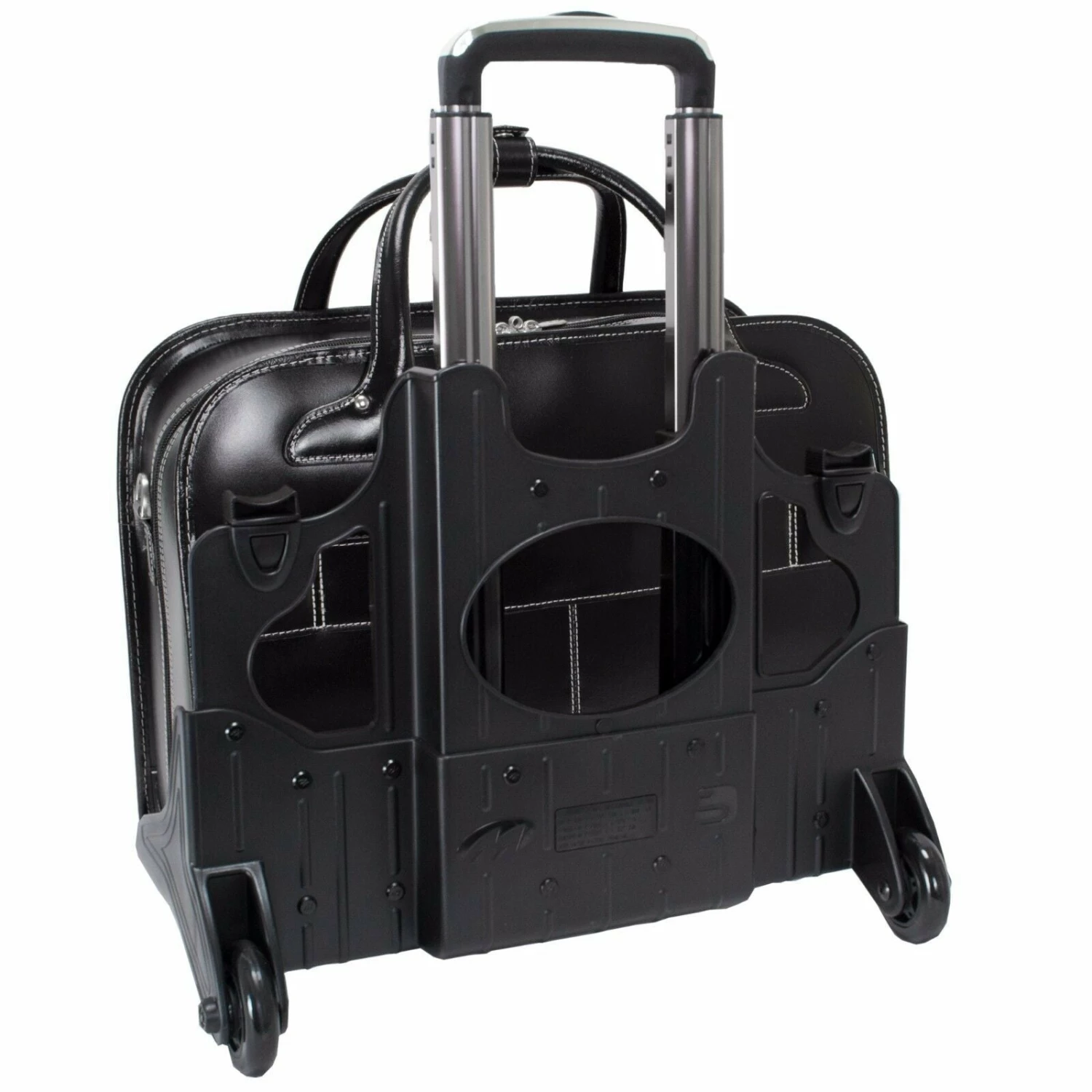 Patented 2-in-1 Detachable Wheel and Handle System. Interior organizer with storage space for media devices, business cards, key holder and pens. Double compartment divided by secure, padded zipper pocket for tablets. Built-in padded laptop compartment that protects most laptops up to 15.4.4″ screen size. Dual Laptop Protection System uses a high-tech ABS frame to protect laptop from exterior impact and high-density foam to help absorb shock and prevent moisture intake. Smart Attachment Strap allows piggy-backing on extended handles of other rolling cases & luggage. Adjustable, non-slip, shock absorbing shoulder strap alleviates body strain. Bonus, Protective Weatherproof Cover.