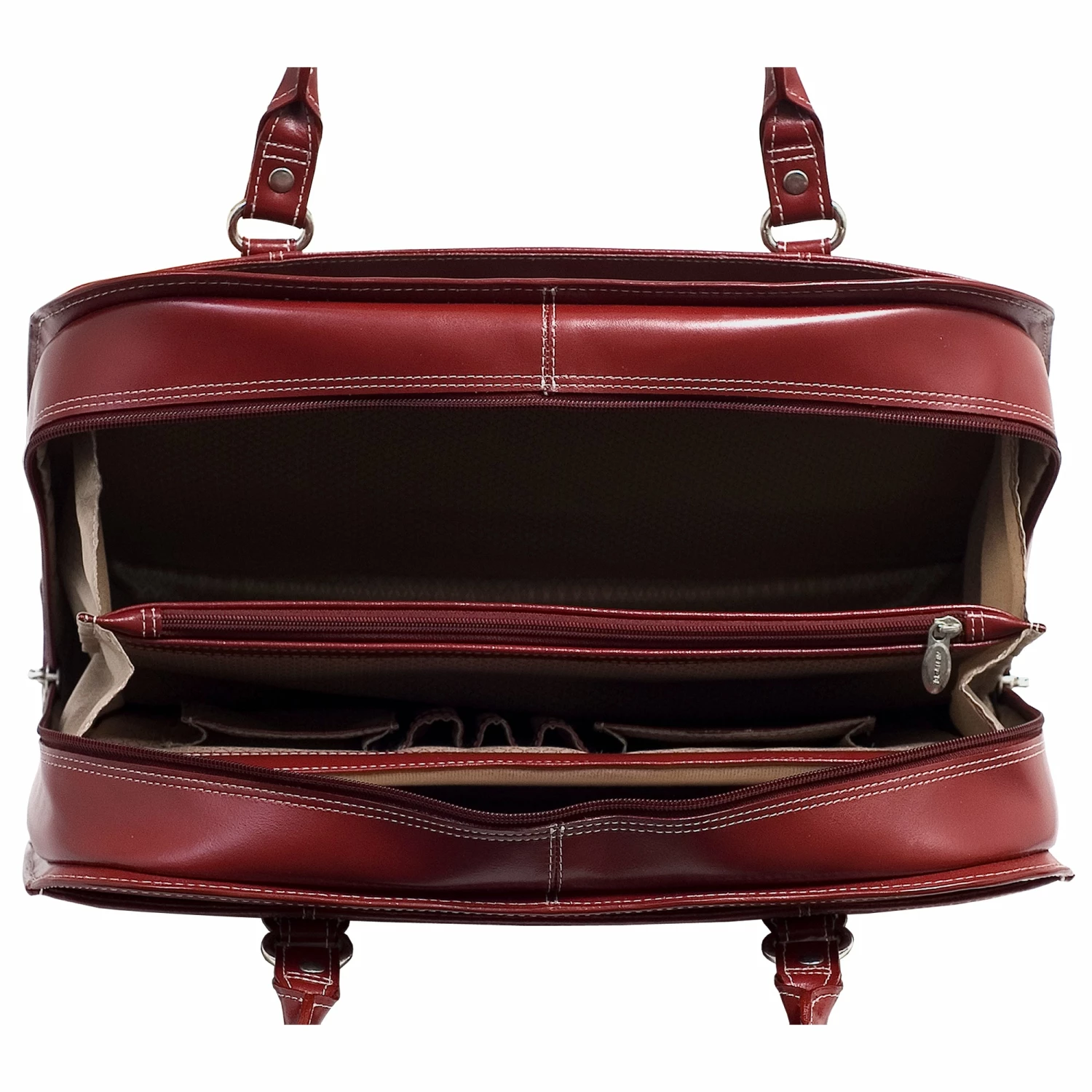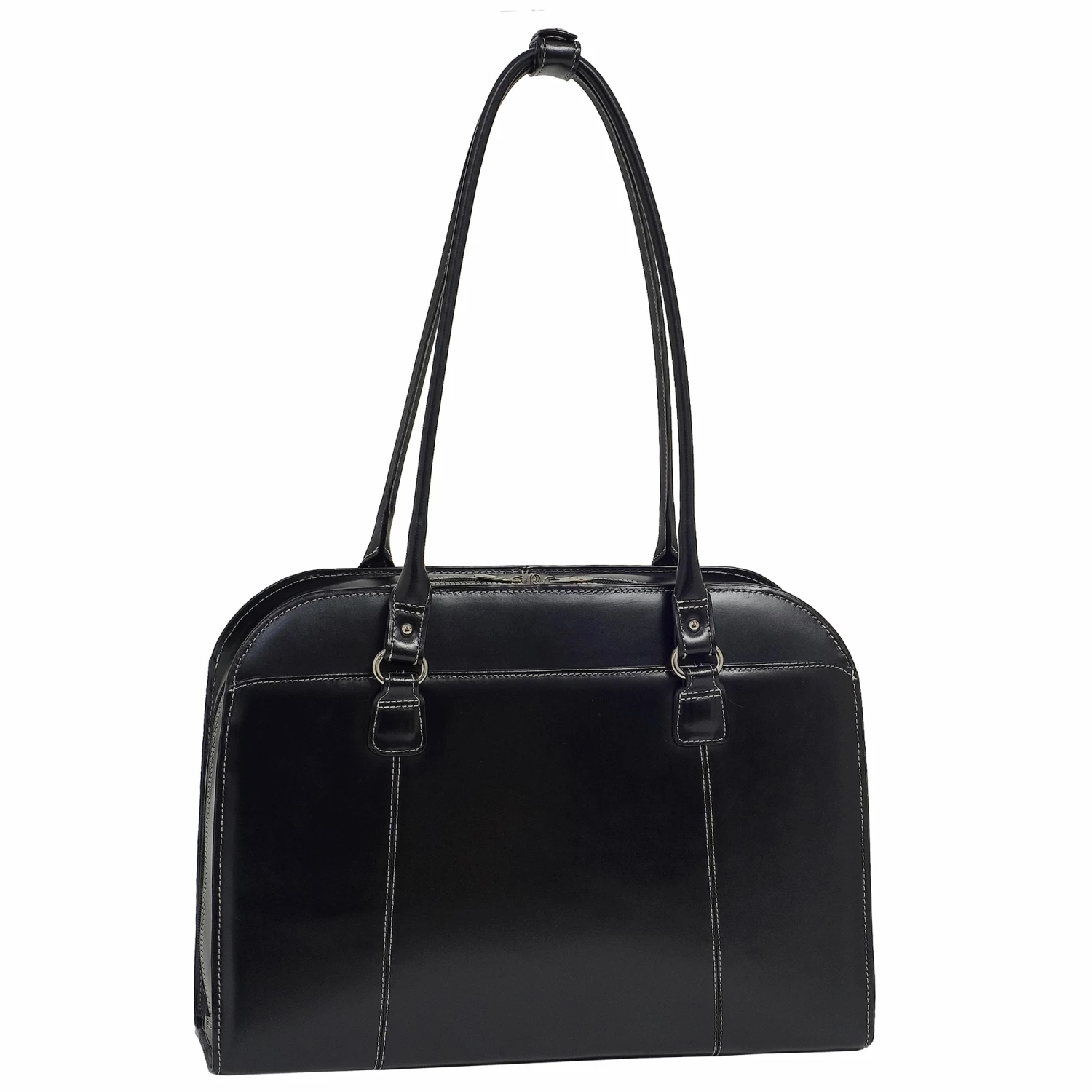 The McKlein USA Hillside Leather Ladies Briefcase features a small front pocket, front pocket for files, and back pocket for accessories. Main compartment features an interior zipper pocket and an interior organizer for pens, business cards and small devices. Built-in high-density compartment protects laptops up to 14″ in screen size. Leather shoulder straps.