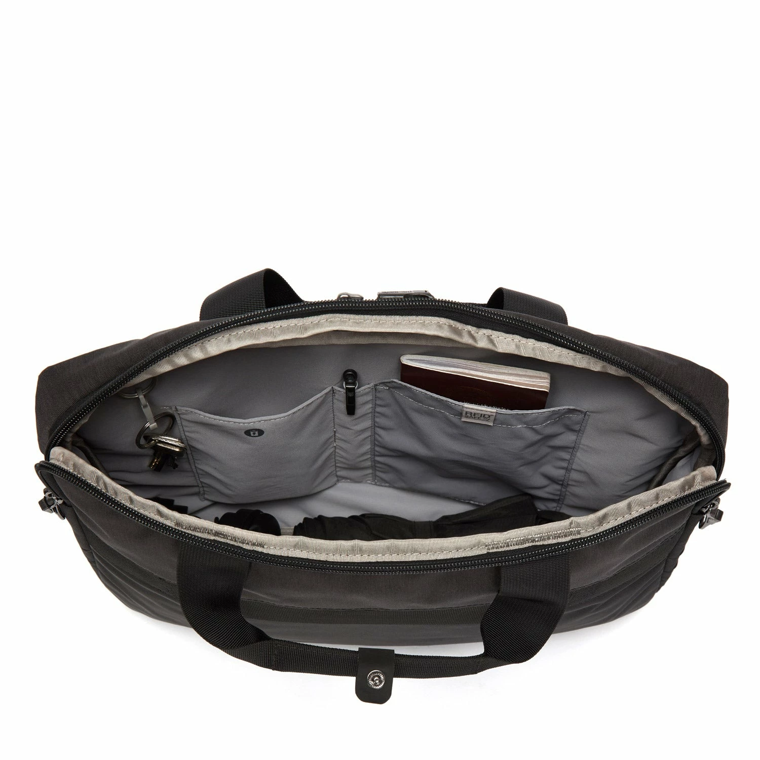 A minimalist laptop bag that’s loaded with features – this slim anti-theft brief has puncture-proof, lockable zips, an RFID blocking pocket and an anchor strap to protect your valuables. Organization keeps things easy to store and find, while a luggage slip and power bank pocket with cable access make commuting and working remotely effortless.