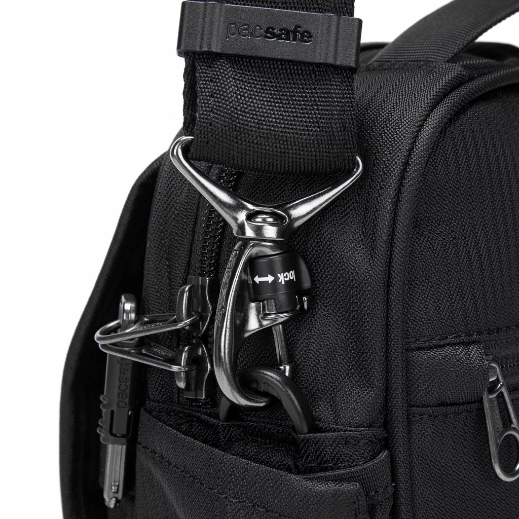 - Cut-resistant anchor strap secures around a fixed object to protect your bag