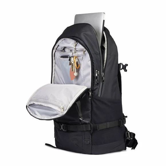 The Venturesafe X 40L is an impressive large volume backpack that’s ready for anything. With durable, water-resistant exterior, structured back panel, and adjustable waist and chest straps, this pack is great for travel and outdoors, or for daily use if you need extra space. Fits a 15″ laptop, with anti-theft zipper clips and clasps, and tons of internal organization and pockets to keep your things safe and secure.