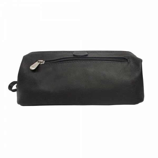 Framed top-zip opens wide to main compartment with open pocket. Front zip-pocket and side handle for easy carrying.
