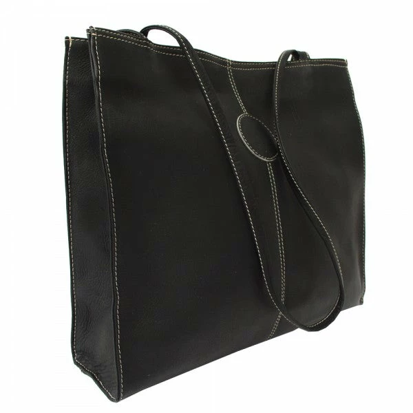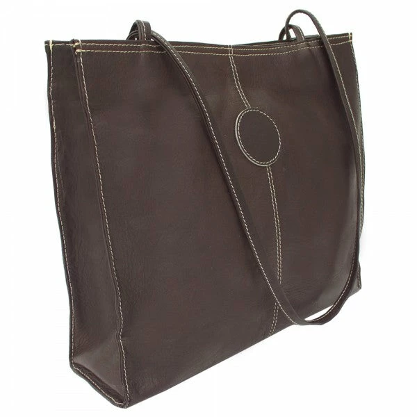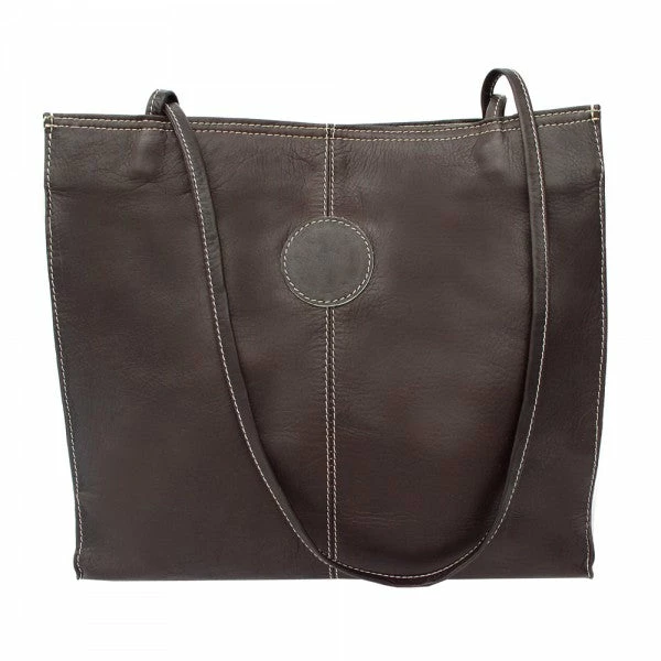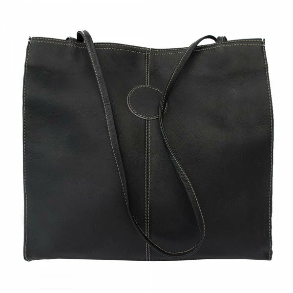 The Piel Leather Medium Market Bag features a magnetic snap closure that opens to the main compartment with interior zip-pocket, cell phone pocket, and detachable coin pouch. Double 30″ thin straps for easy carrying.