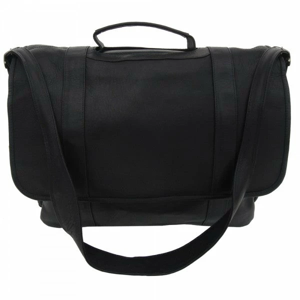 Double magnetic snaps open flap to reveal large rear open pocket for files, etc. Front open pocket with strap closure features full organizer and open pocket. Zippered main compartment opens to a padded laptop pocket (15″ x 12″ x 2″). Top handle for easy carrying, large back zip-pocket, and adjustable/detachable shoulder strap. Now with back strap to attach to a telescopic handle.
