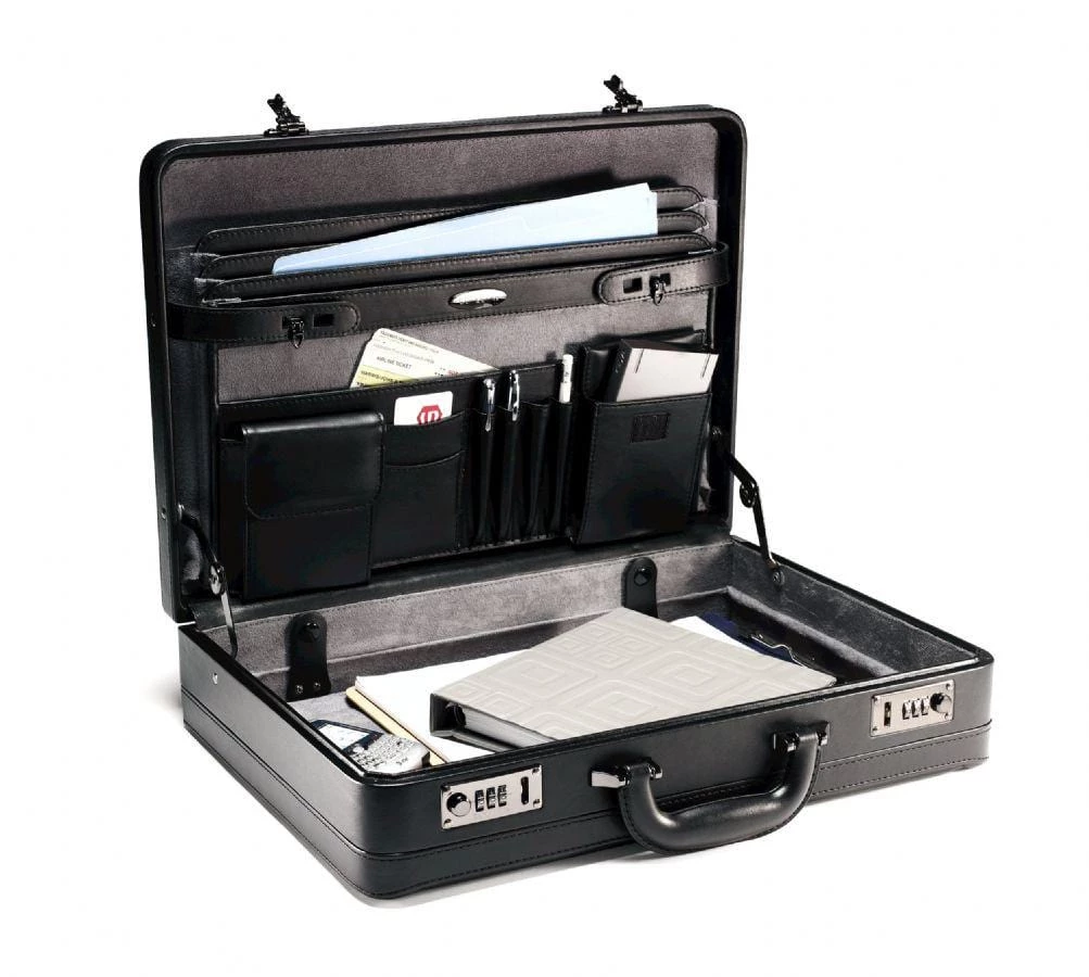 The Samsonite Bonded Leather Attach is the perfectly elegant yet functional everyday case for yourself or for your favorite professional! Carry your business necessities with class and simple, sleek style in the Samsonite Bonded Leather Attach. This luxurious yet affordable briefcase combines rigid, framed and hinged construction with soft and supple leather to create a clean, structured mobile office with everything you need to stay well-organized; and it provides ample storage space for all your on-the-go essentials.