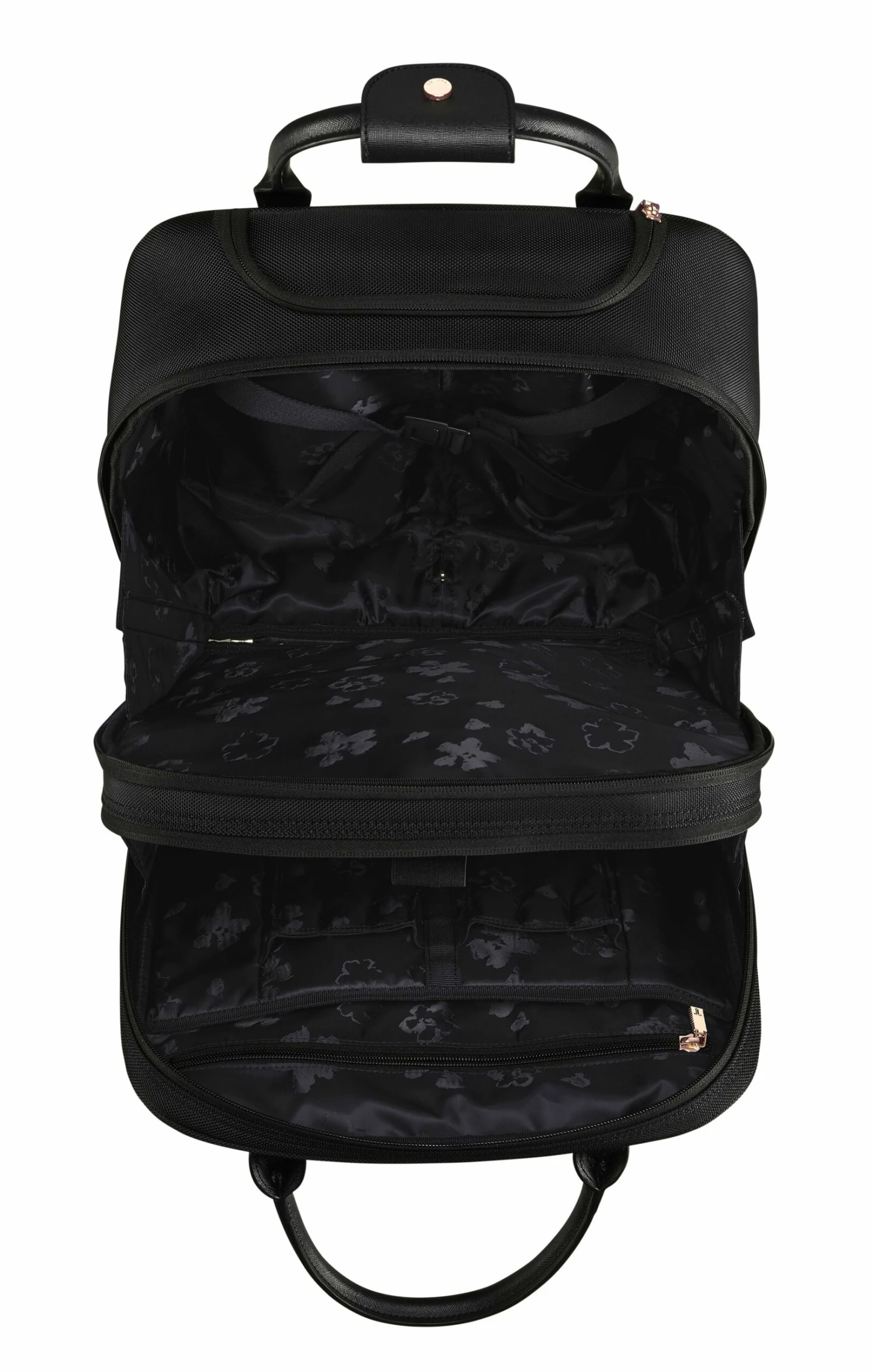 - New beautiful Ted Baker tone on tone Magnolia lining and Ted Baker branded sew on brand label. Internal laptop capabilities and a pack flat section for clothes for overnight stays.