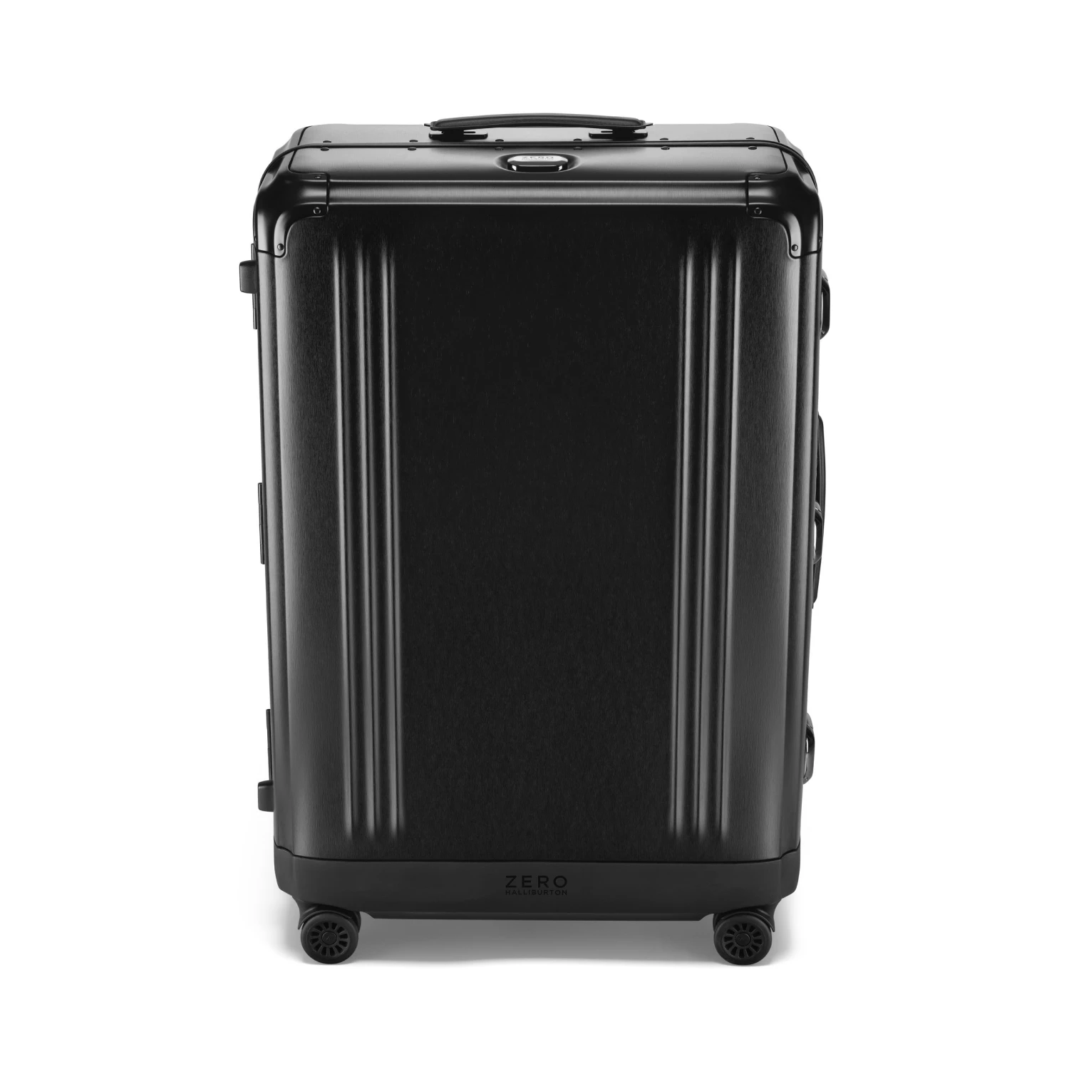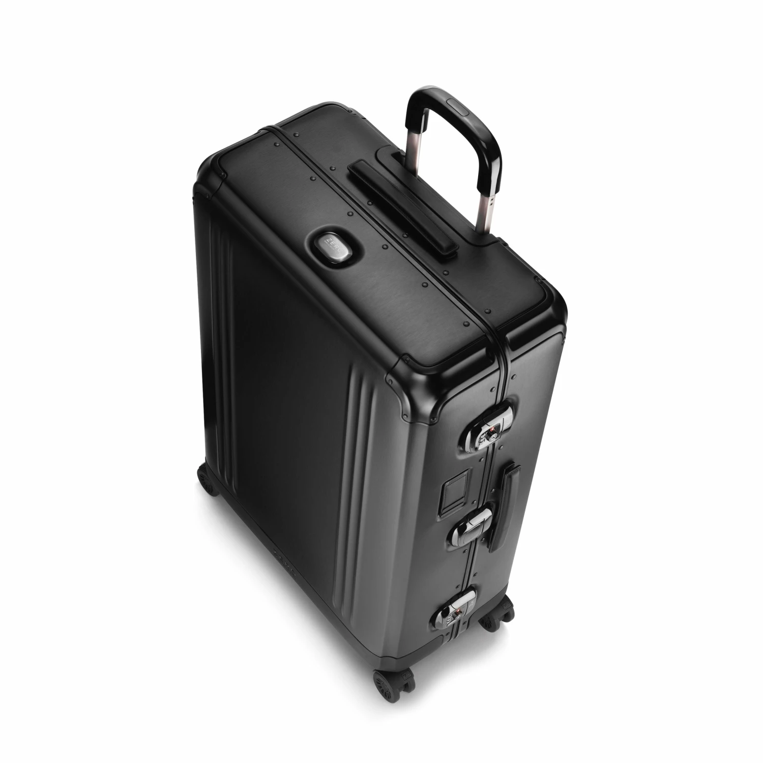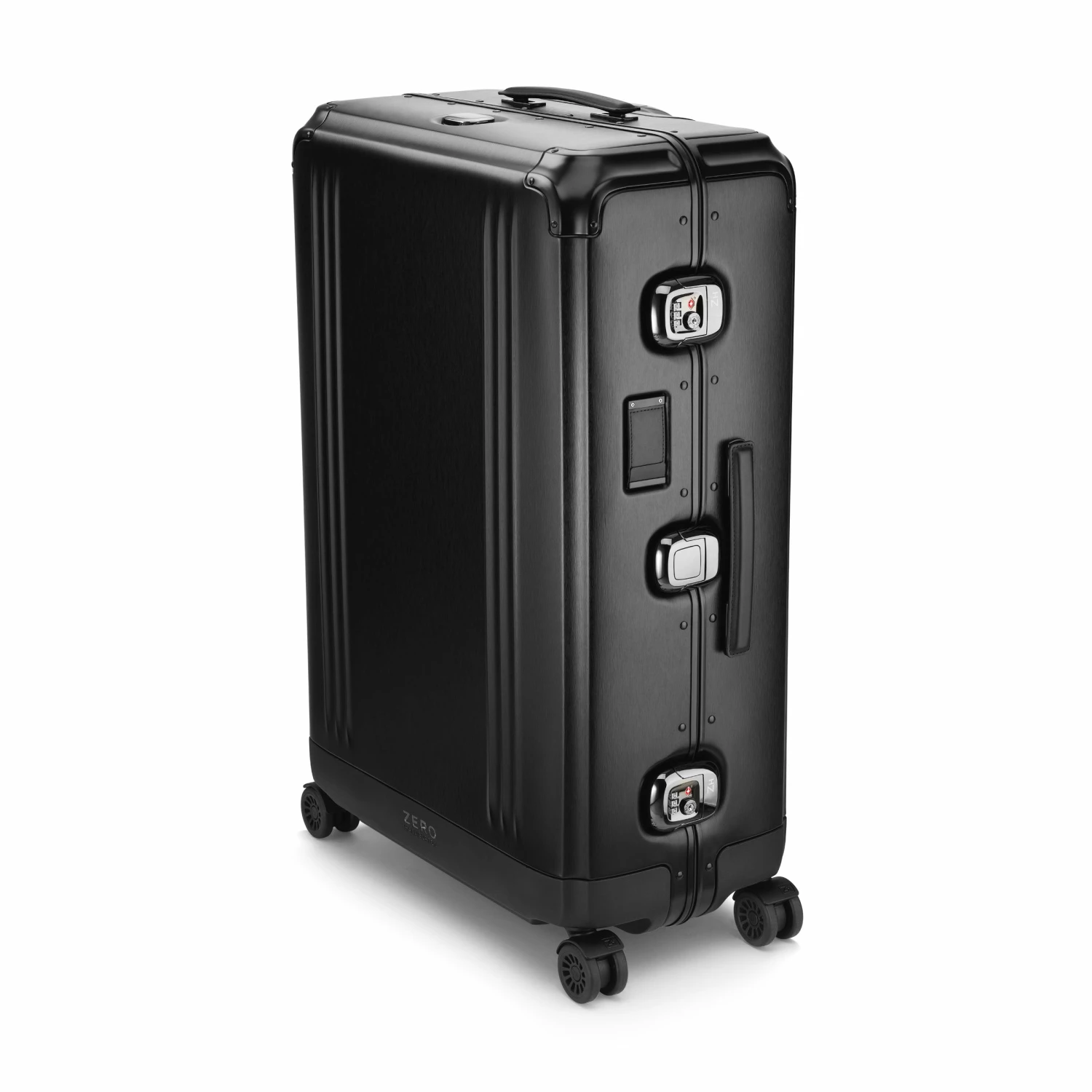 - Black brushed aluminum with black coated leather handles, and ZH Blue interior with ZH monogram and polished black pull handle