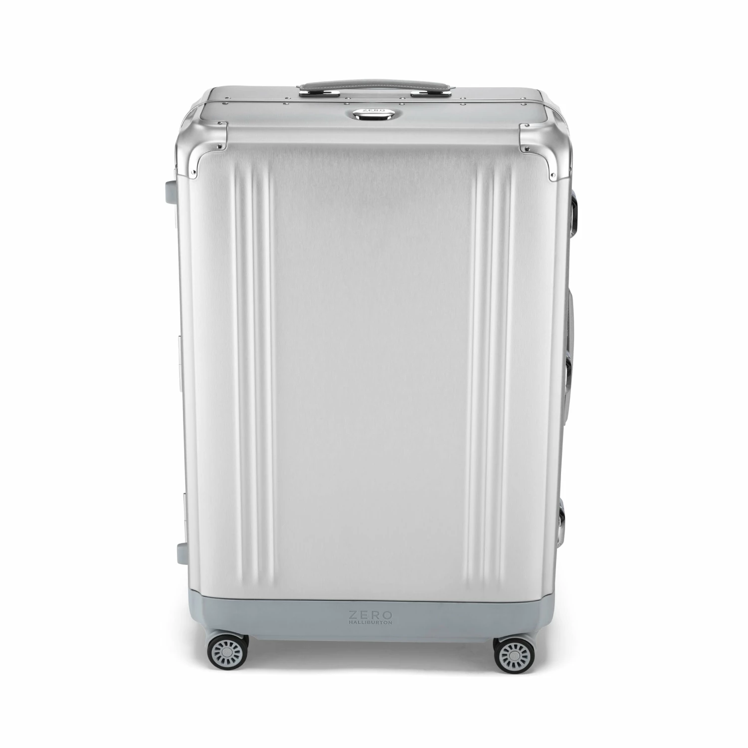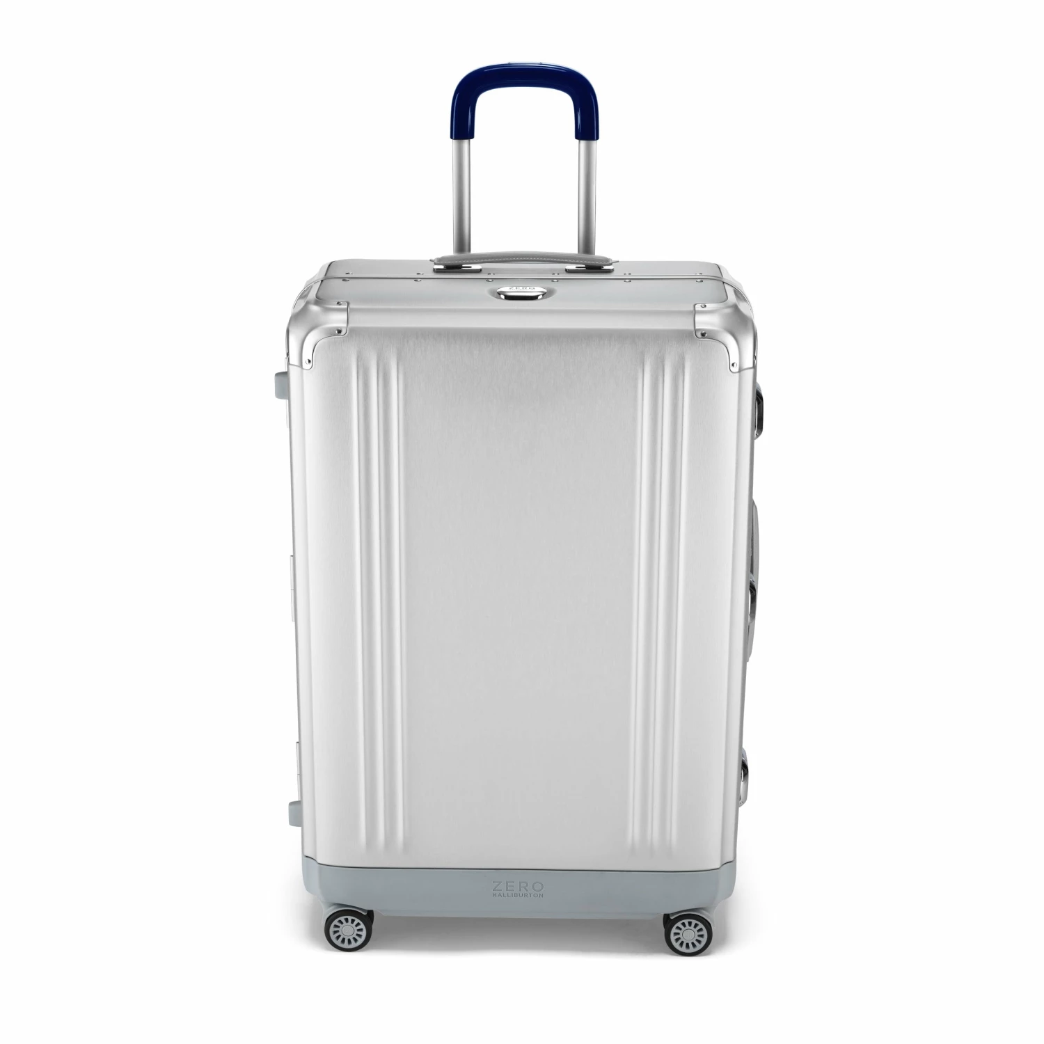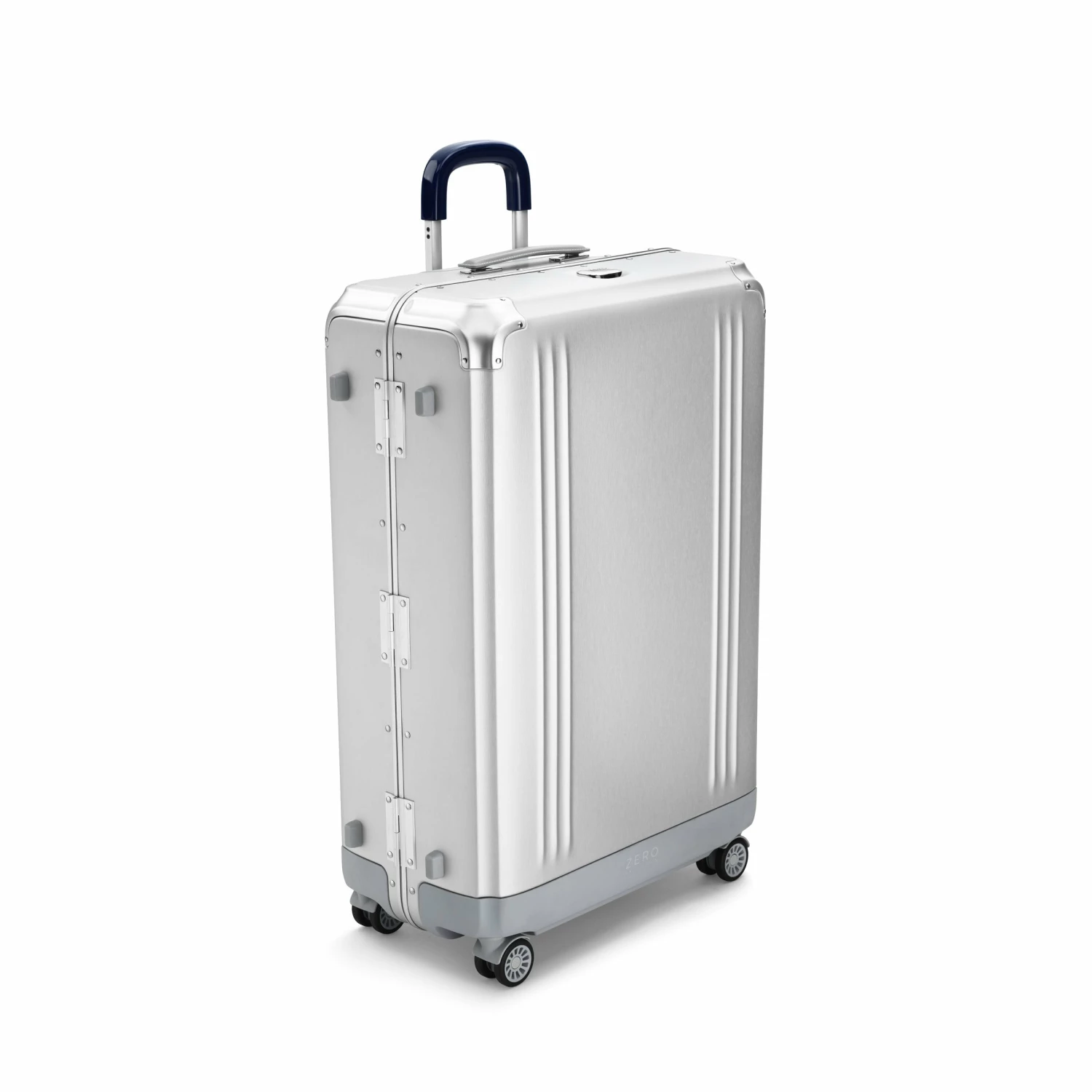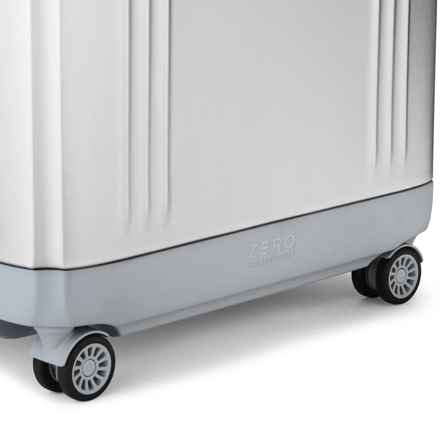 - Silver brushed aluminum with light gray coated leather handles, ZH Blue interior with ZH monogram and brilliant ZH blue pull handle