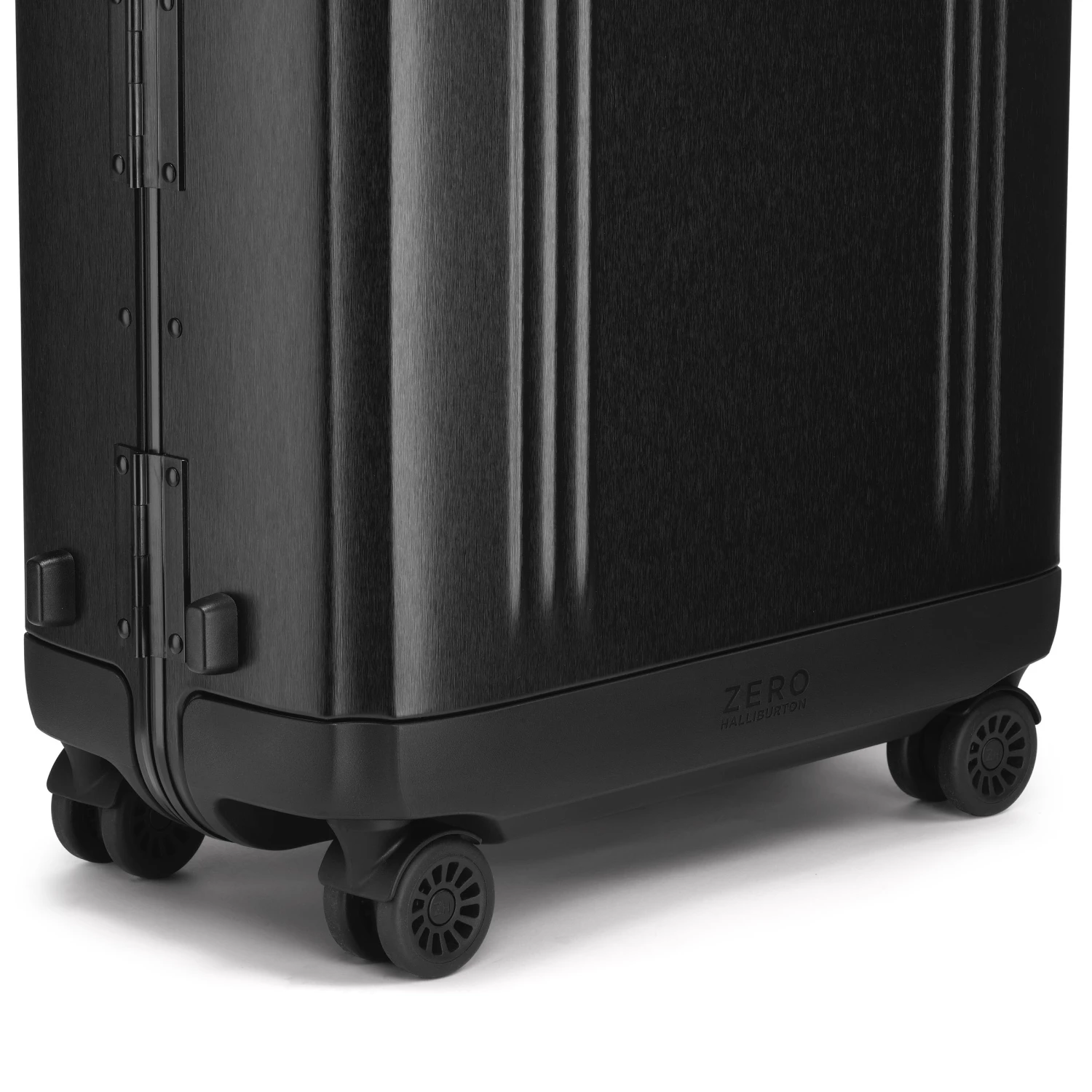 - Black brushed aluminum with black coated leather handles, and ZH Blue interior with ZH monogram and polished black pull handle